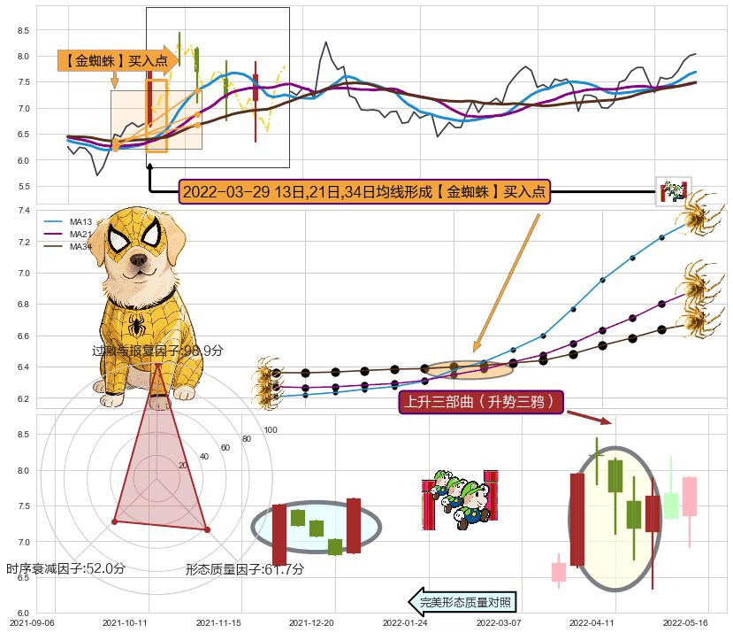 | 3 🅚:【蛟龙出海】买入点 ➕ ☯️:缠论中枢点上升缠中枢B突破后距离1卖距离较远,随后猜想后续持续拉升(趋势跟踪) ☞ 看多信号 ⇥ 【均线】交织【图形】⇥ 综合量化分数: 84 | > |