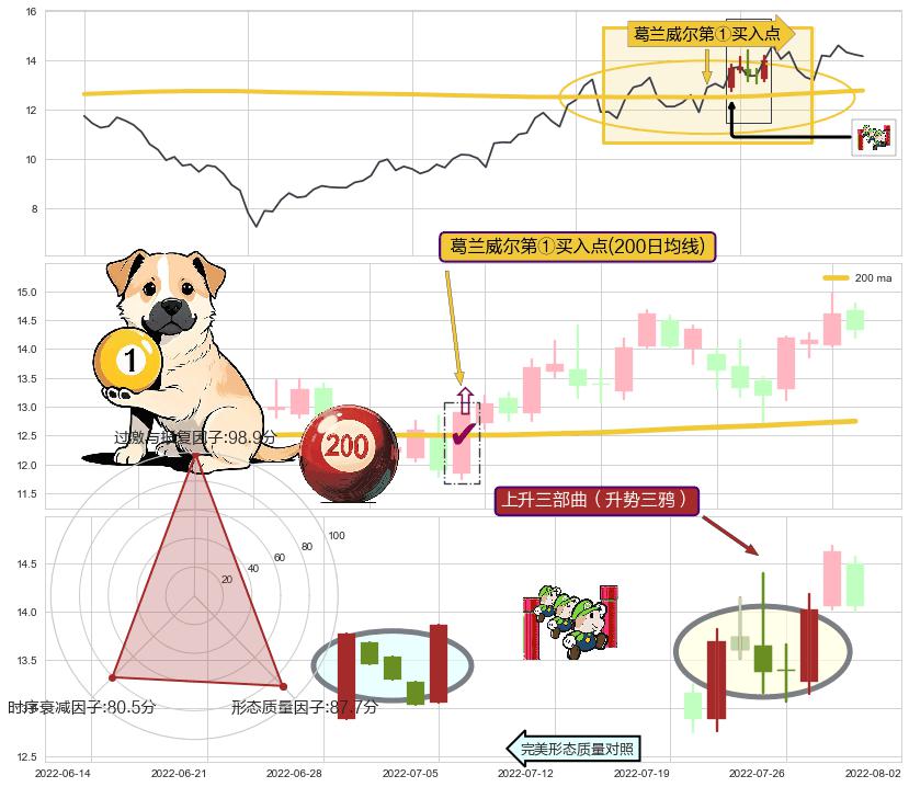 | 2 🅚:多方炮 ➕ 🎢:葛兰威尔第①买入点买入点信号形成后,猜想后续下跌趋势反转上涨趋势(均值回复) ☞ 看多信号 ⇥ 【均线】交织【🅚线】⇥ 综合量化分数: 66 | > |