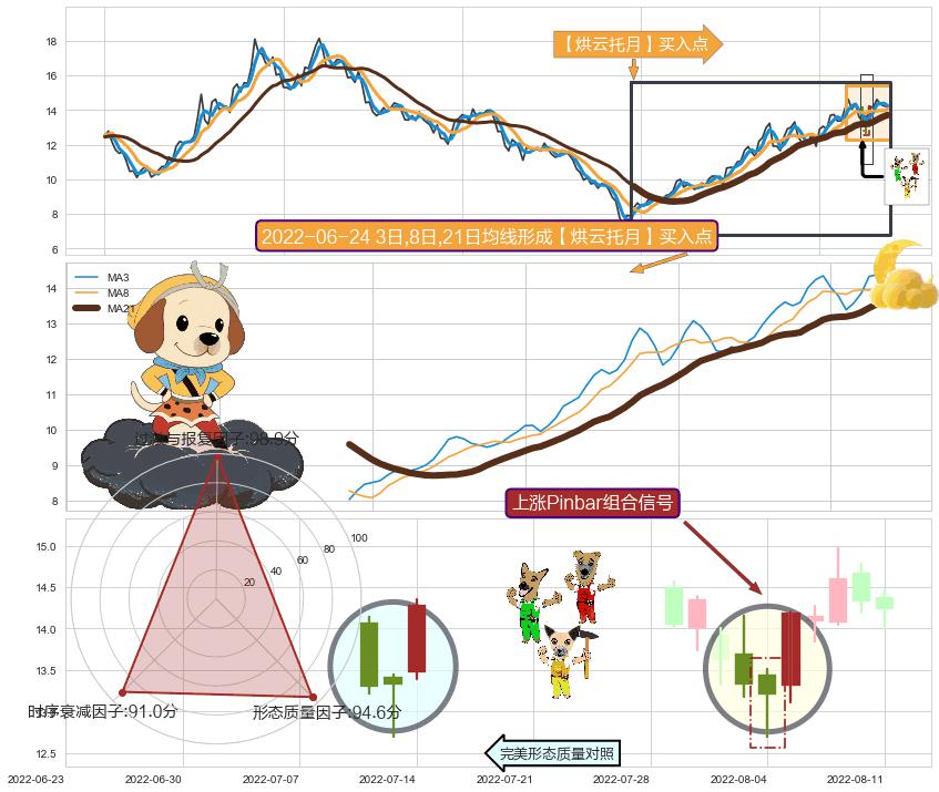 | 5 🅚:上涨两颗星 | 上涨三颗星 ➕ 🎢:【鱼跃龙门】买入点均线组合买入点信号形成后,猜想后续充分蓄势之后,上涨突破关键阻力位 ☞ 看多信号 ⇥ 【均线】交织【🅚线】⇥ 综合量化分数: 51 | > |
