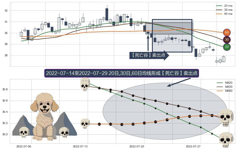 ⚀ 2022-07-15-日至2022-07-29-日显现 20日-30日-60日均线 【死亡谷】卖出点 看空信号,后市看跌,卖出