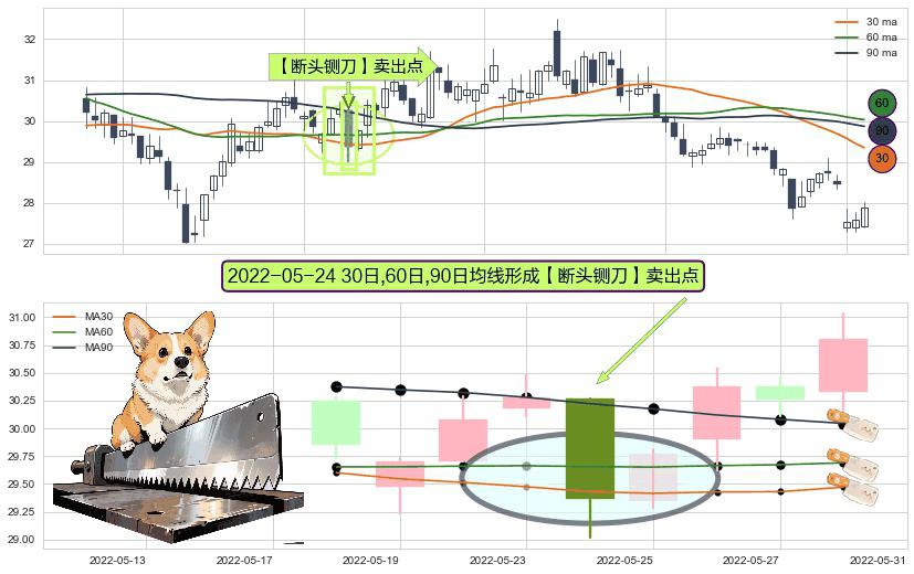 ⚀ 2022-05-24日显现 30日-60日-90日均线 【断头铡刀】卖出点 看空信号,后市看跌,卖出