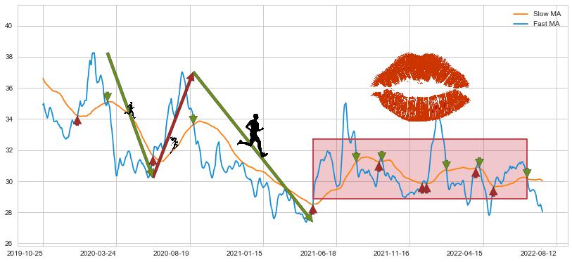2021-04-29至2022-07-14 慢线与快线多次接触,存在上下穿越,有缠绕