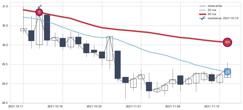 ⚀ 中期均线MA30下穿长期均线MA60形成的交叉是标准 死亡交叉