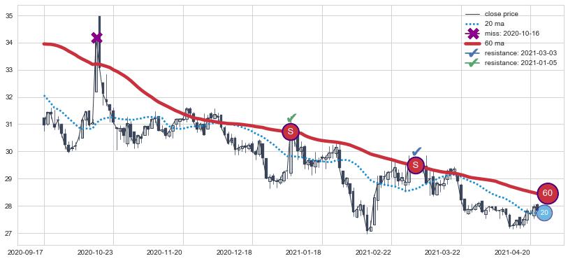 ⚅ 短期均线MA20下穿中期均线MA60形成的交叉是普通交叉并非 死亡交叉