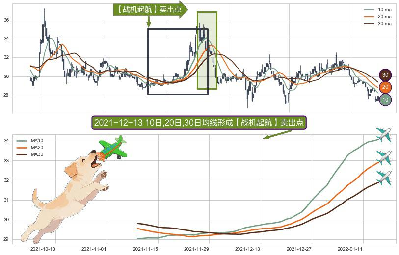 ⚀ 2021-11-09日-2022-01-14日显现 10日-20日-30日均线 【战机起航】卖出点 看空信号,后市看跌,卖出