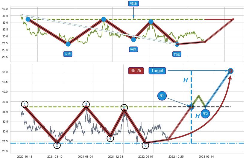 ➢ 图示②④⑥三个波谷均在 36.14 附近成功获得【支撑】→反弹上涨