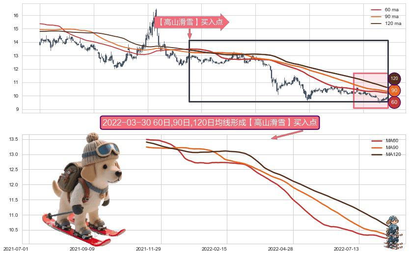 形态多维评估: ⚀ 2021-11-12日-2022-08-12日显现 60日-90日-120日均线 【高山滑雪】买入点 看多信号,后市看涨,买入