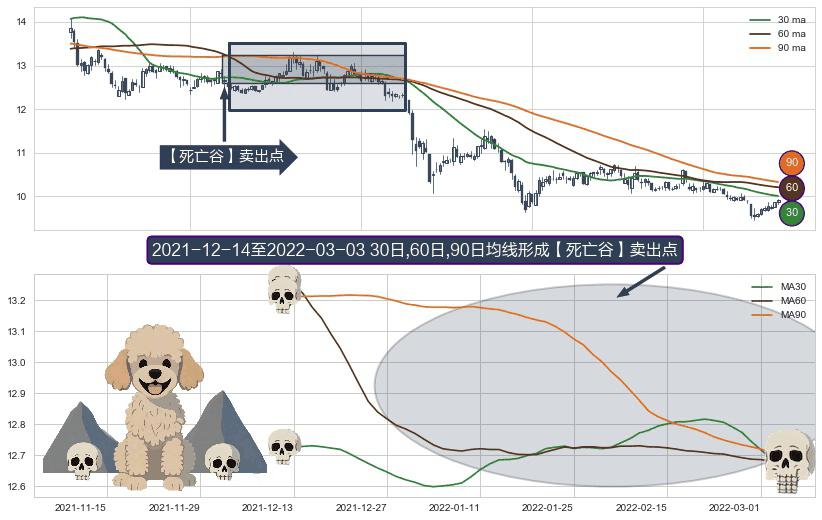 形态多维评估: ⚀ 2021-12-15-日至2022-03-03-日显现 30日-60日-90日均线 【死亡谷】卖出点 看空信号,后市看跌,卖出