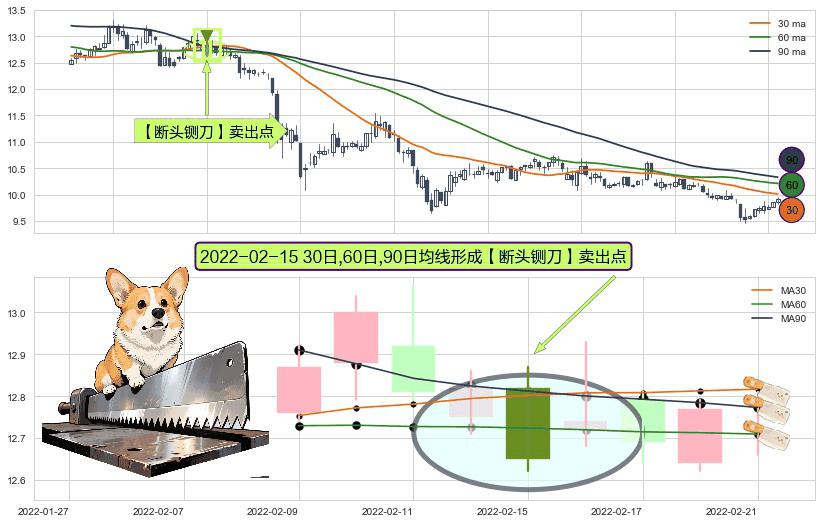 形态多维评估: ⚀ 2022-02-15日显现 30日-60日-90日均线 【断头铡刀】卖出点 看空信号,后市看跌,卖出
