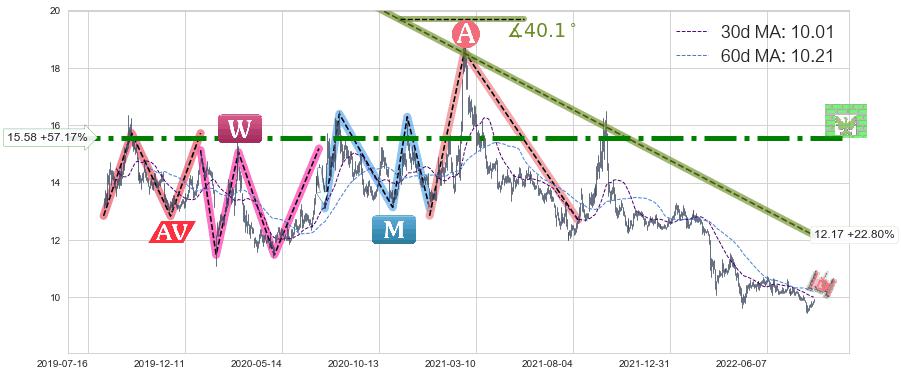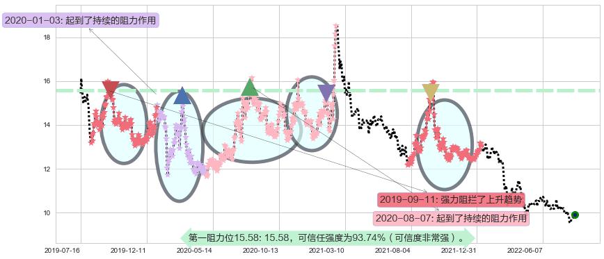 ♘ 阻力价格位15.58,可信任强度93.74%,距离最后交易2022-08-12形成的收盘价格9.91相差 +57.17%