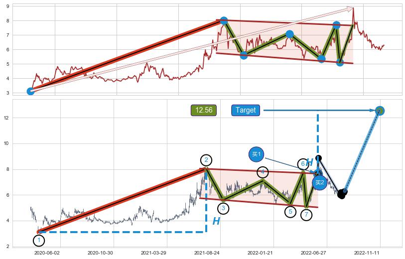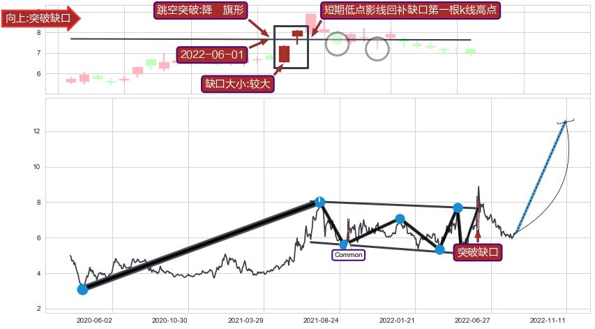 ➣ 【买2】: 保守型 买点 →(2022-06-08: 7.89 )形成降⚑旗形突破后的【回抽确认】