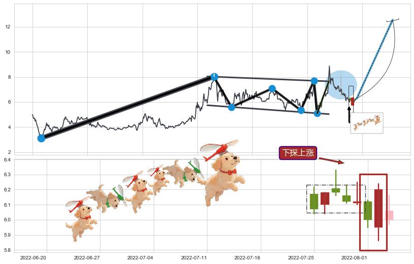 ➢ 低点影线(2022-06-10: 7.19 )→再次回踩→第一根k线高点(2022-05-31: 7.34 )