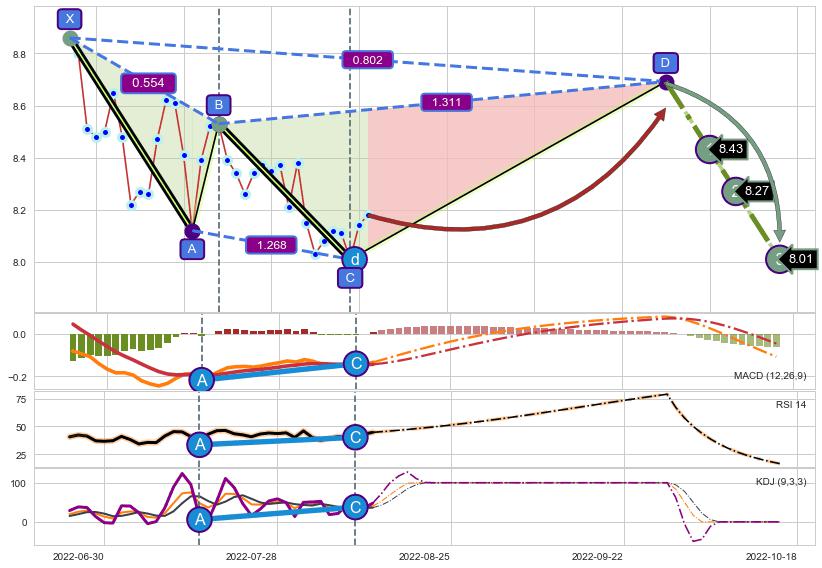 ➣ D点拟合预测价格8.69,距离最后交易收盘价格8.18相差 +6.26%