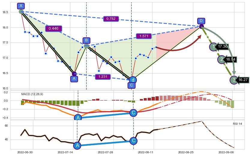 ➣ D点拟合预测价格18.03,距离最后交易收盘价格17.35相差 +3.92%