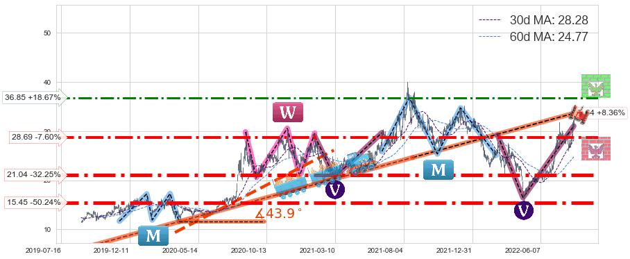 ♘ 阻力价格位36.85,可信任强度61.07%,距离最后交易2022-08-12形成的收盘价格31.05相差 +18.67%