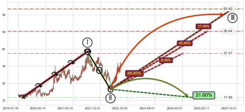 ♘ 支撑价格位21.04,可信任强度91.18%,距离最后交易2022-08-12形成的收盘价格31.05相差 -32.25%