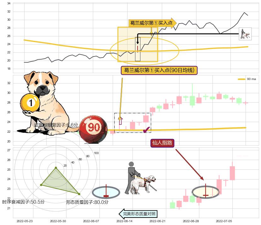 | 2 🅚:多方炮 ➕ 🎢:葛兰威尔第①买入点买入点信号形成后,猜想后续下跌趋势反转上涨趋势(均值回复) ☞ 看多信号 ⇥ 【均线】交织【🅚线】⇥ 综合量化分数: 60 | > |