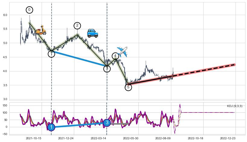 ➢ AI预测: 假定反转启动后, 第❷目标位置(2023-06-27, 4.02)