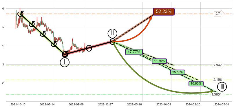 ➣ AI预测: 假定反转启动后, 第❶目标位置(2023-05-30, 4.32)