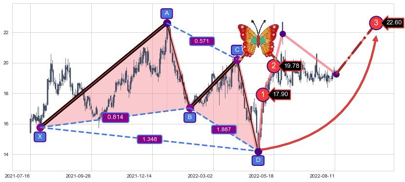 ➣ 已完成【蝴蝶】形态起点X: 2021-07-28, 终点D: 2022-04-26, 共180交易日