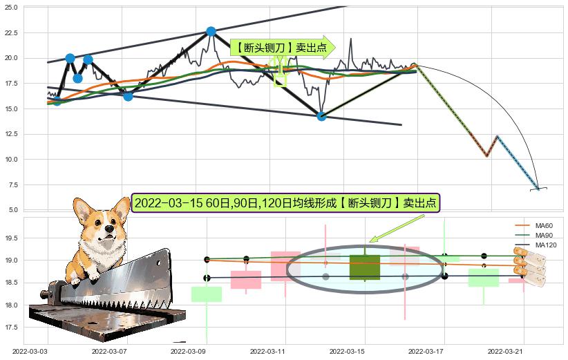 ➢ 【卖0】上涨趋势线在→(2022-01-10: 20.09 )被突破,反转趋势形成