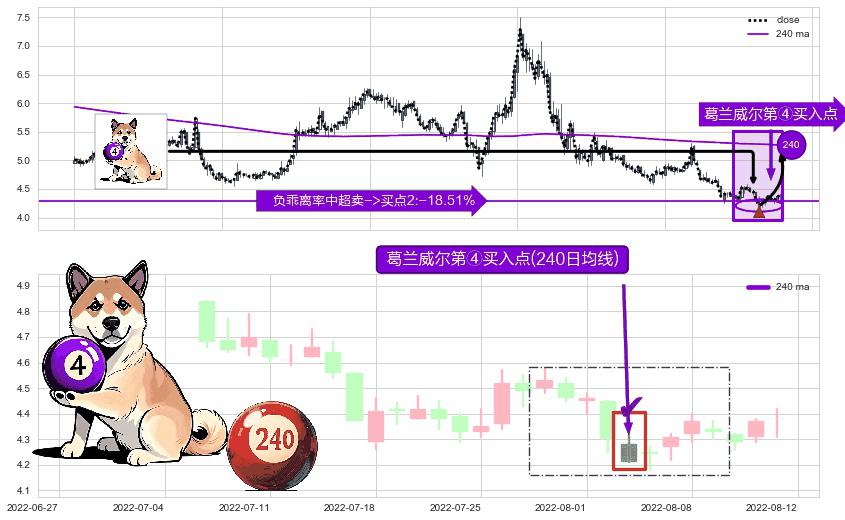 ⚀ 2022-08-03-日显现 葛兰威尔均线 240日均线 第④买入点 下降趋势均值回复的短线反弹信号,后市看涨,买进信号