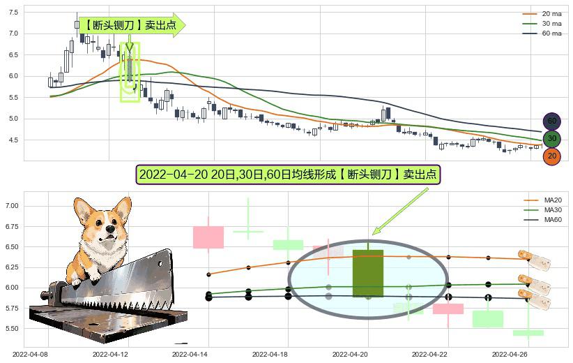 ⚀ 2022-04-20日显现 20日-30日-60日均线 【断头铡刀】卖出点 看空信号,后市看跌,卖出