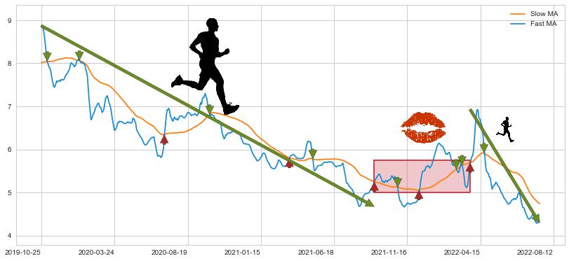 2022-03-24至2022-08-12 慢线与快线呈空头排列, 慢线与快线接触少,无缠绕