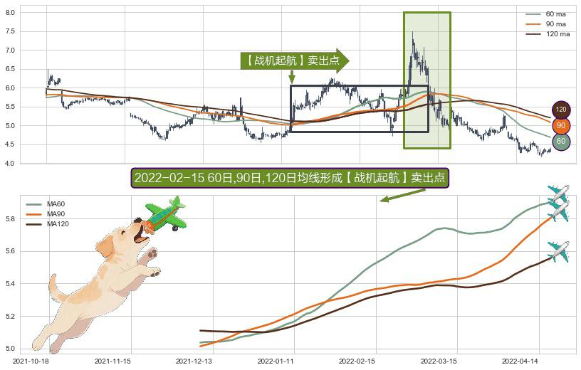 ⚀ 2021-12-08日-2022-04-19日显现 60日-90日-120日均线 【战机起航】卖出点 看空信号,后市看跌,卖出