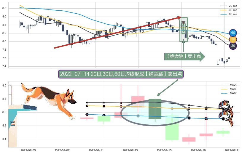 ⚀ 2022-07-14日显现 20日-30日-60日均线 【绝命跳】卖出点 看空信号,后市看跌,卖出