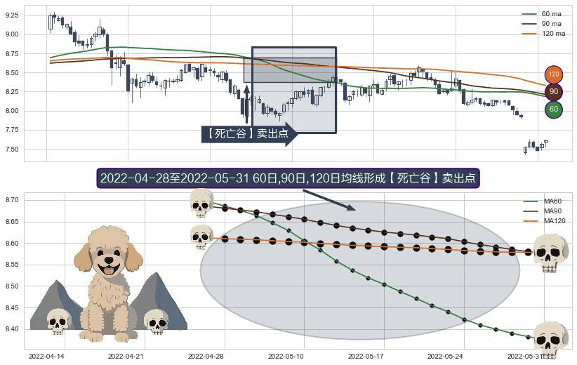 ⚀ 2022-04-29-日至2022-05-31-日显现 60日-90日-120日均线 【死亡谷】卖出点 看空信号,后市看跌,卖出