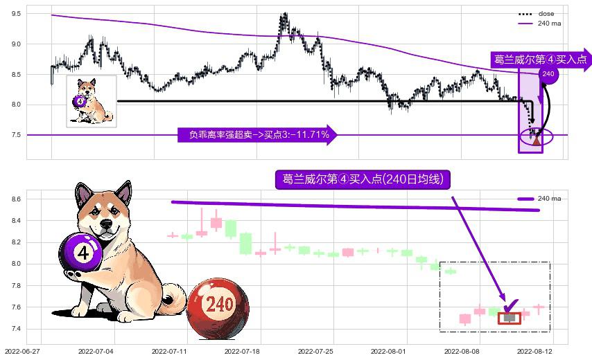 ⚀ 2022-08-10-日显现 葛兰威尔均线 240日均线 第④买入点 下降趋势均值回复的短线反弹信号,后市看涨,买进信号