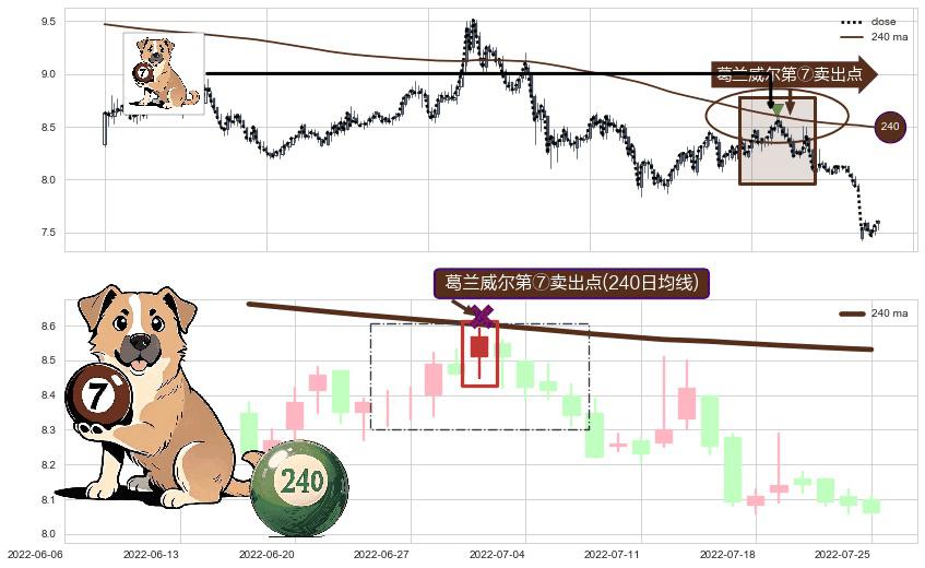 ⚀ 2022-06-30-日显现 葛兰威尔均线 240日均线 第⑦卖出点 下降趋势的中继信号,后市看跌,卖出信号