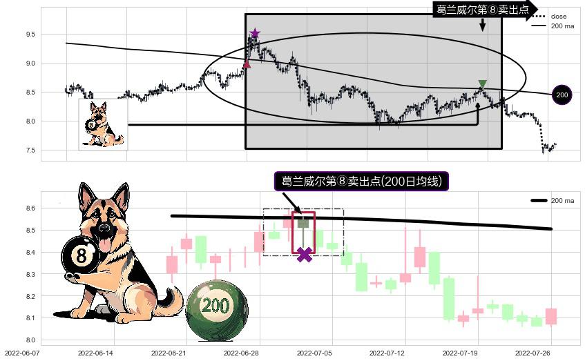 ⚀ 2022-07-01-日显现 葛兰威尔均线 200日均线 第⑧卖出点 下降趋势的中继信号,后市看跌,卖出信号
