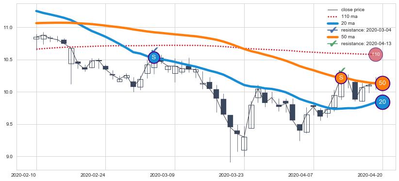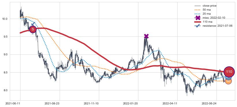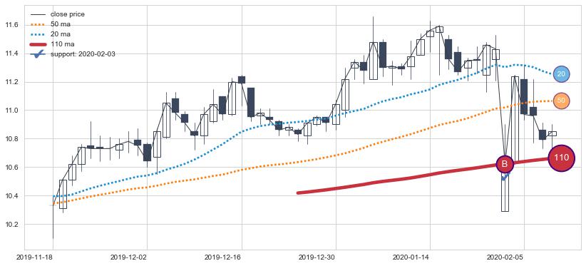 ⚃ 在破位点附近ma走势明显平稳迹象,稍后的走势中ma下垂迹象也出现,信号【可信度中等偏上】