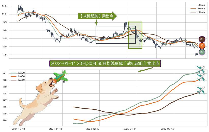 ⚀ 2021-11-23日-2022-03-04日显现 20日-30日-60日均线 【战机起航】卖出点 看空信号,后市看跌,卖出