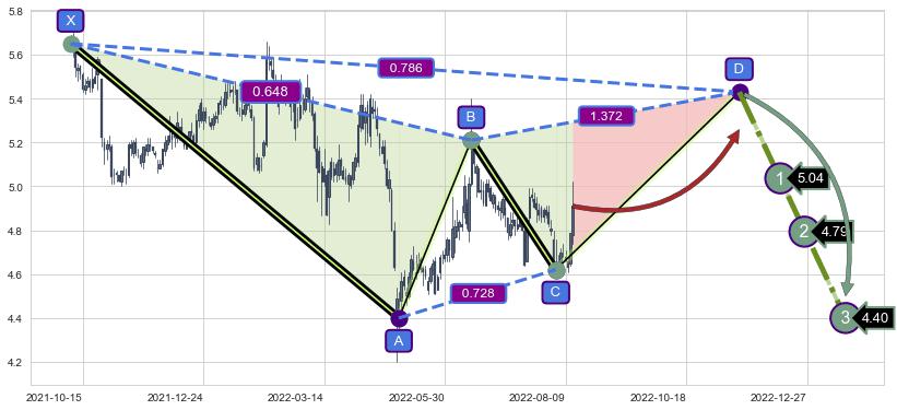 ➣ 未完成【伽利】形态起点X: 2021-10-08, 已到达C点: 2022-08-03, 预测最终D点: 2022-11-17, 共278交易日