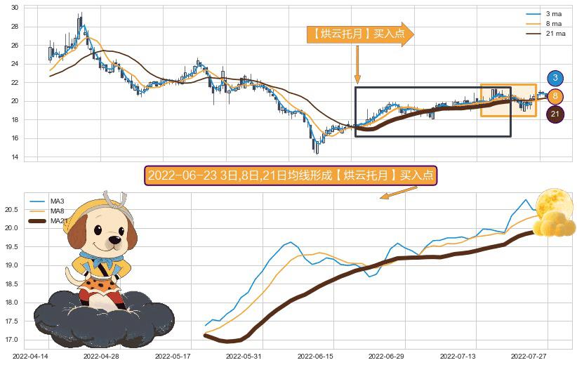 ⚀ 2022-05-19日-2022-07-27日显现 3日-8日-21日均线 【烘云托月】买入点 看多信号,后市看涨,买入