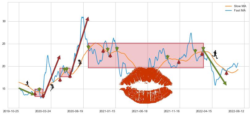 2022-03-07至2022-06-23 慢线与快线呈空头排列, 慢线与快线接触少,无缠绕