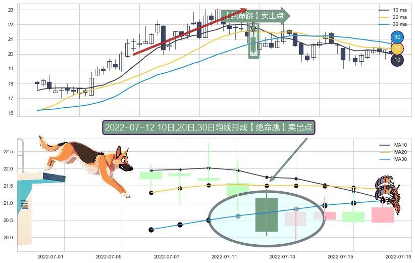 形态多维评估: ⚀ 2022-07-12日显现 10日-20日-30日均线 【绝命跳】卖出点 看空信号,后市看跌,卖出
