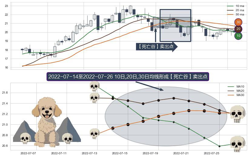 形态多维评估: ⚀ 2022-07-15-日至2022-07-26-日显现 10日-20日-30日均线 【死亡谷】卖出点 看空信号,后市看跌,卖出