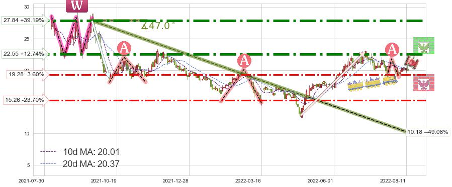 ♘ 阻力价格位22.55,可信任强度89.86%,距离最后交易2022-08-12形成的收盘价格20.00相差 +12.74%