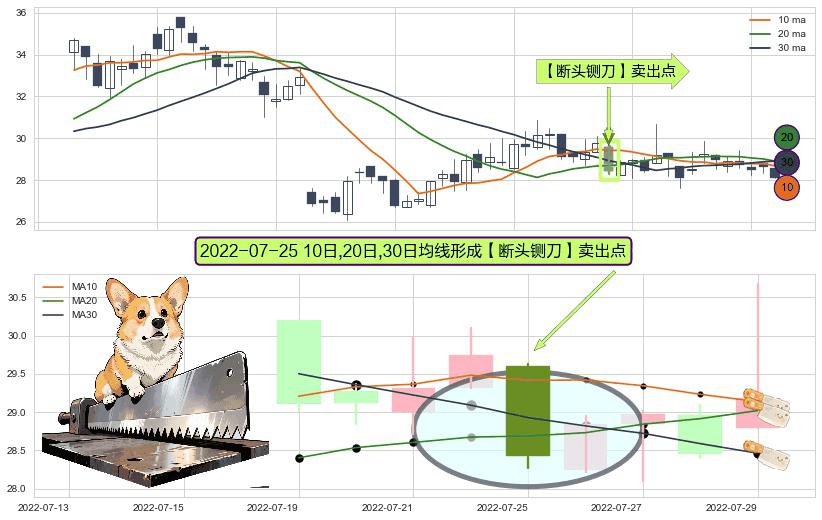 形态多维评估: ⚀ 2022-07-25日显现 10日-20日-30日均线 【断头铡刀】卖出点 看空信号,后市看跌,卖出