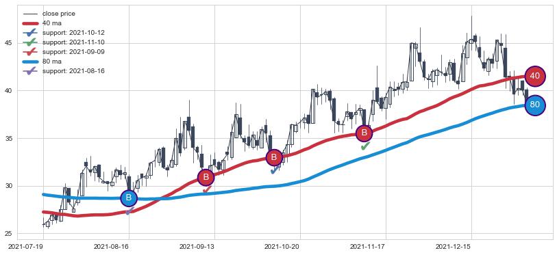 上涨趋势2021-07-19-2022-01-04,均线40, 80确认关键支撑4处