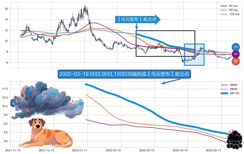 形态多维评估: ⚀ 2022-01-10日-2022-05-25日显现 60日-90日-120日均线 【乌云密布】卖出点 看空信号,后市看跌,卖出