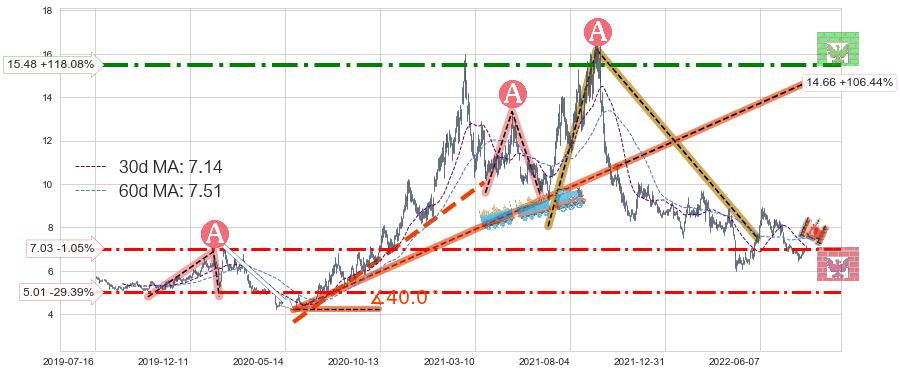♞ 30日均线:7.14,60日均线:7.51→ 快线<慢线