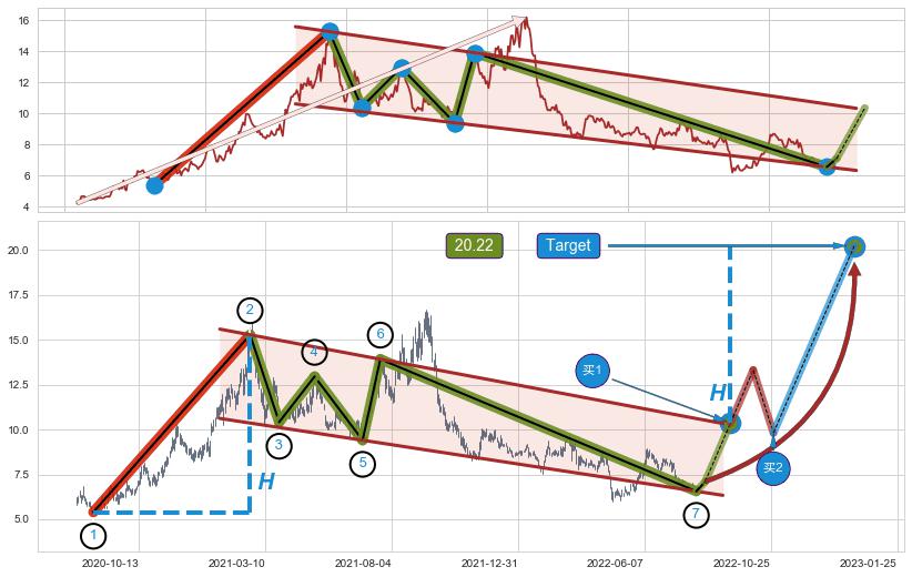 ➣ 最小中继整理涨幅→𝐇: 9.87 (𝐇旗杆的长度:旗杆起点→顶点)