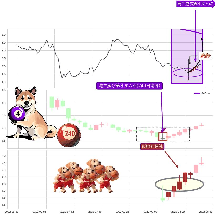 ➢ 低点影线(2022-05-19: 6.33 )→再次回踩→第一根k线高点(2022-05-12: 6.48 )
