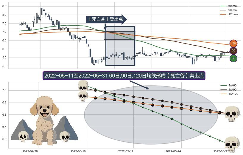 ⚀ 2022-05-12-日至2022-05-31-日显现 60日-90日-120日均线 【死亡谷】卖出点 看空信号,后市看跌,卖出
