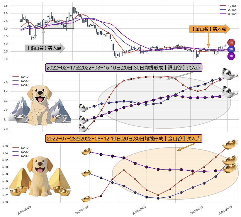 ⚄ 2022-07-29-日至2022-08-12-日显现 10日-20日-30日均线 【金山谷】买入点 其再次确认了买入信号,可靠性更强,买入